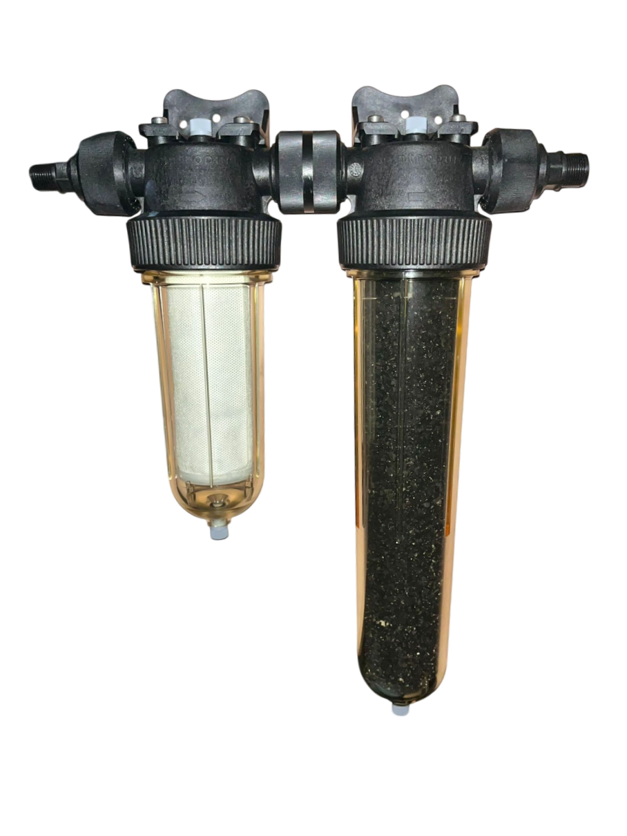 De filterset NW25/25TE bestaat uit een microfilter en een actief koolfilter. Het microfilter filters op 25micron en zorgt voor verwijdering van kleine deeltjes uit het regenwater. Het actief kolfilter filter organisch materiaal uit het regenwater en zorgt voor helder regenwater.