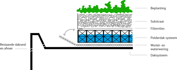 Mijn Waterfabriek levert hiervoor het zogenaamde Polderdak, een systeem van onze partner de Dakdokters.